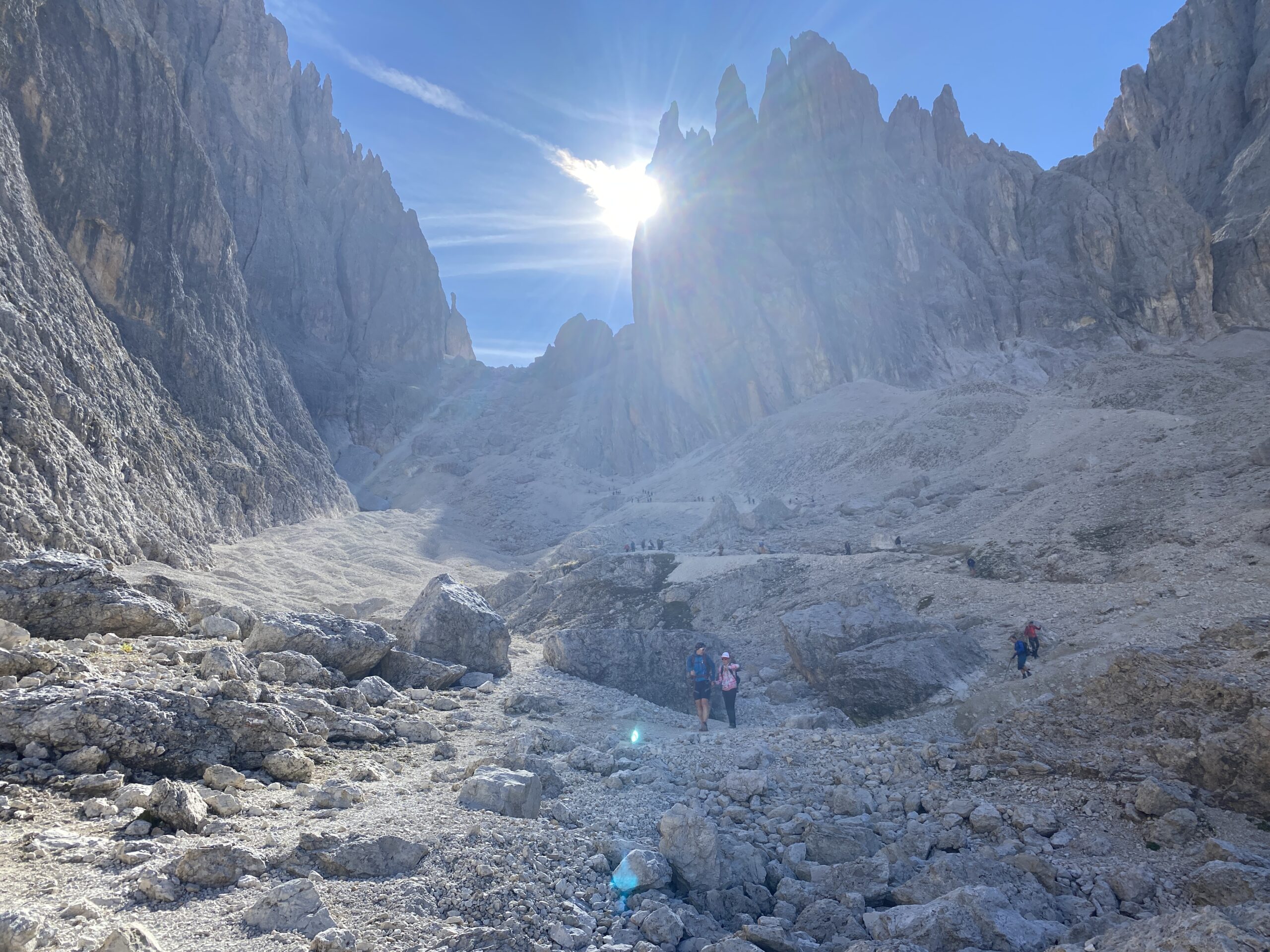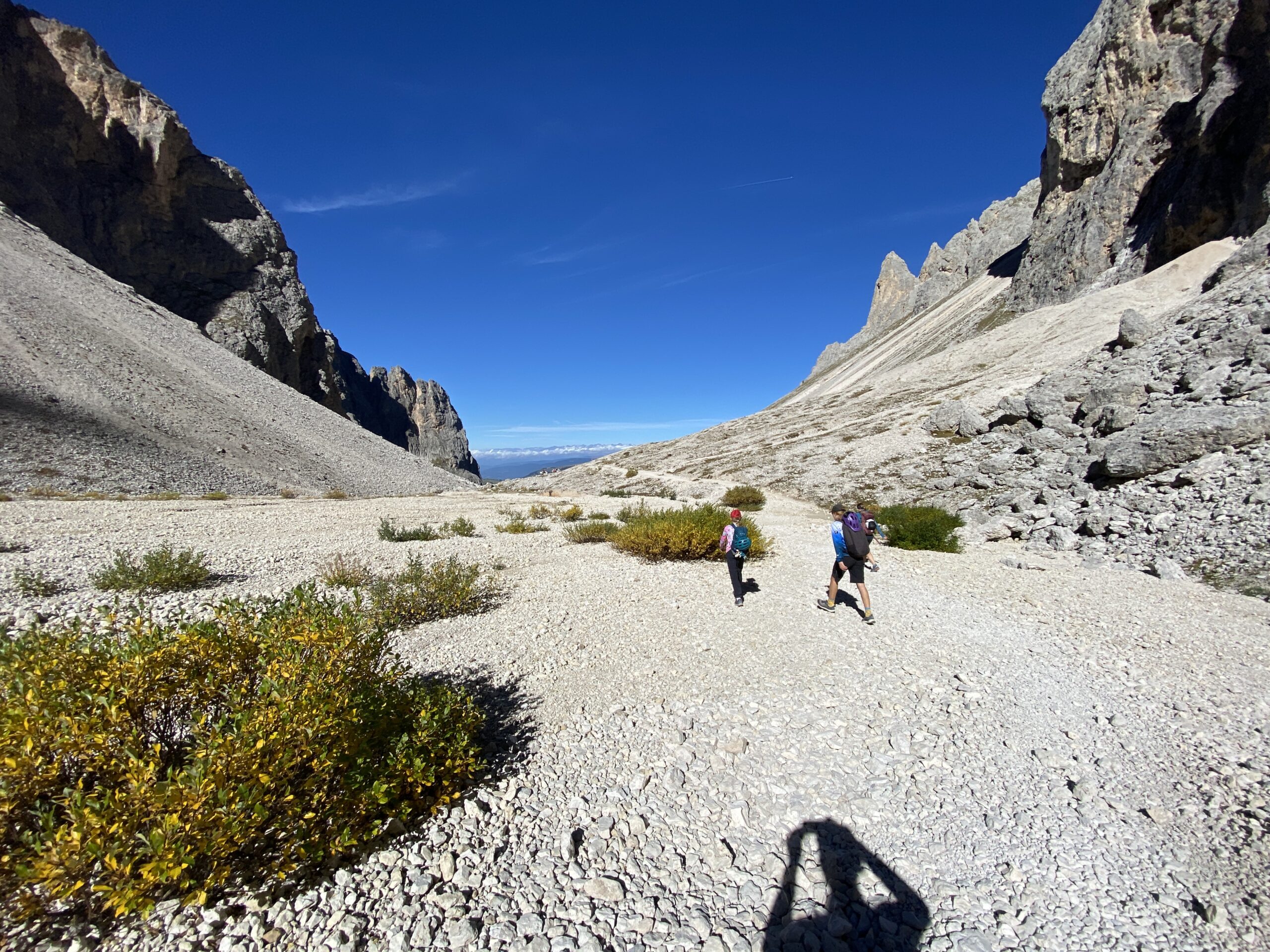 Der Abstieg erfolgte über Steig Nr. 527 zur Plattkofelhütte (2300 m). Von dort folgten wir dem Friedrich-August-Wegzurück zum Sellajoch, wo sich unsere Runde schloss.